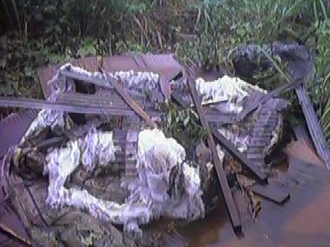 (そこだけ草がべったりと寝ている上に波板の残骸が多い。)