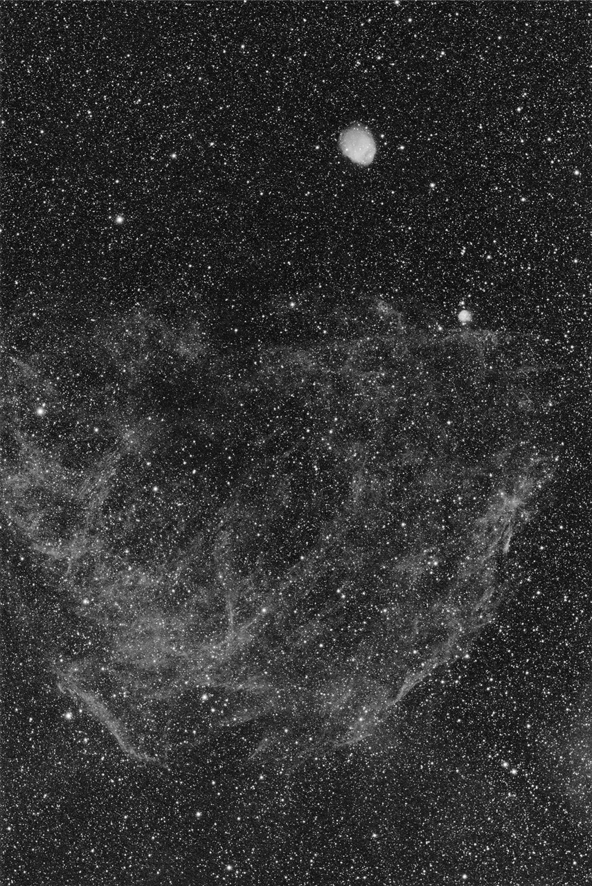 Sh2-221は淡い難物なので露光時間を 120秒にしているが、薄ーい雲が通過していたようで S/Nが悪い。